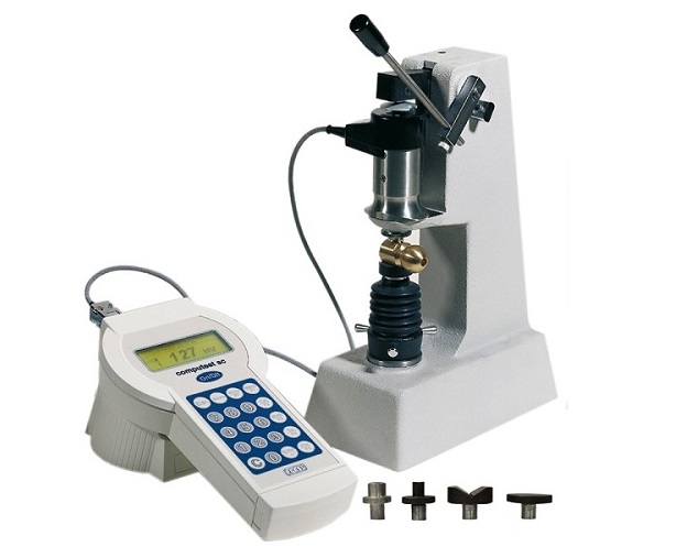 適用范圍: 廣泛應用于汽車、航空、能源、船舶、鐵路及有色金屬材料等工業領域。 特別適合于大工件、大管件、薄壁管、薄鋼板、汽車零部件、薄片、零部件、焊接件的熱影響區域、熱處理硬化層等的測試。 也適合于鋁合金、鎂合金、鈦合金等較軟有色金屬材料的測試。 ? 性能特點 直接數顯 靜載荷,執行洛氏試驗方法 壓痕小,幾乎相當于無損硬度測試 具有存儲、打印及輸出等功能 軟件功能強,柱面硬度修正等 具有自校準功能 操作簡單,攜帶方便 ? 技術參數: 測試原理:洛氏測試原理。 預載荷:1.2 kg(11.8 N) 工作載荷:5 kg(49 N) 測試標尺:HRC(0-70),HRB(0-120),HV5(35-1080) ,HB30(80-700),N/mm2(266-2180),Kg/mm2(27-222),Depth(0-100) 可選配標尺:SHV5(6-180),WHV5(500-1800),HB5(40-180),HB10(50-180),SHB5(6-180),SHB10(20-180) 直接數顯:液晶顯示屏80×30mm 讀數分辨率:0.1 執行標準:依據EN 10109-3 標準狀態下的示值誤差:符合ASTM E18、ISO6508及GB/T230等的要求 標準狀態下的示值重復性:符合ASTM E18、ISO6508及GB/T230等的要求 測試方向:任意 存儲文件個數:8 存儲容量:1000個值 軟件的功能:設置公差范圍、得出試樣可測量厚度、設置加載時間、試驗結果統計、選擇標尺、設定語言以及對儀器進行標定等。 輸出:RS 232C 電源:100-230VAC,單相,50/60Hz(充電電池8小時/次) 工作環境:10-50℃,百分之10RH-百分之90RH。 可測量區域(平面):>20mm×20mm;采用支架時為>2mmx2mm。 可測量直徑(弧面):采用V型砧板時為>Φ10mm;采用支架時為>Φ3mm。   標準配置 Computest SC主機:1臺 洛氏錐形金剛石壓頭:1個 標尺:HRC,HRB,HV5 ,HB30,N/mm2,Kg/mm2,Depth 洛氏標準硬度塊:2個(60 HRC, 80 HRB) 布氏硬度塊:1個(200 HB30) 磁性平砧:1個 大平砧:1個 V型砧板:1個 50mm延長臂:1套 電池充電器:1套 操作手冊:1本