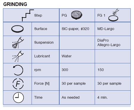 ●? 鋅與水的反應使樣品清洗困難。在磨制過程可以不考慮,但是在金剛砂拋光時清洗劑推薦用添加異丙醇的酒精,用清潔的壓縮空氣干燥。